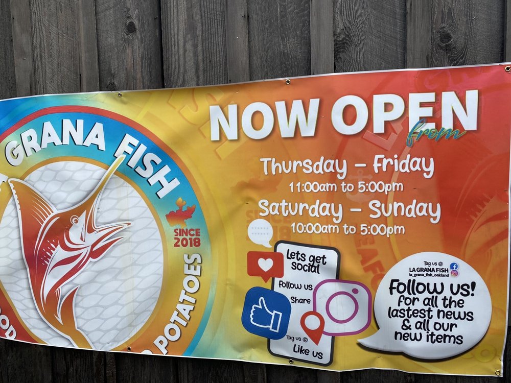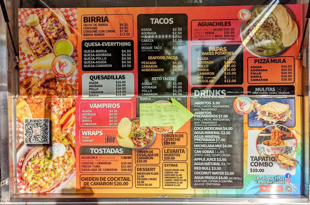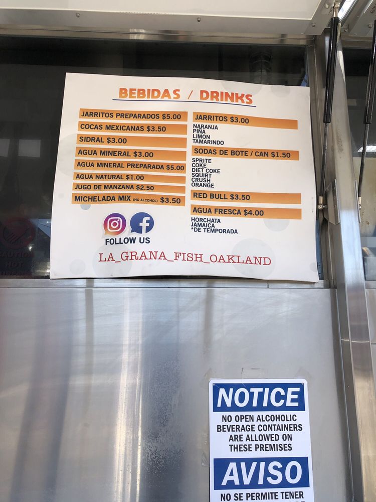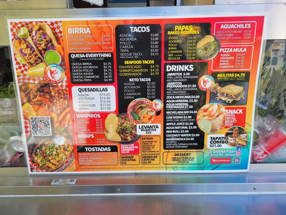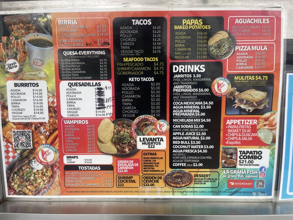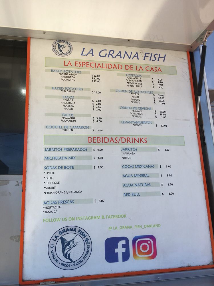La Grana Fish, a seafood and taco food truck located in Oakland, CA, offers a diverse menu with options like Quesa Everything, Birria, and Baked Potatoes. Customers rave about the delicious food, outdoor seating, and friendly service. Highlights include the QuesoEverything Pollo, loaded baked potatoes, and the Birria Tacos with consomé. The unique orange sauce on the fish tacos sets them apart from others in the area. While some dishes may be slightly pricey, the quality and variety make it worth the visit. The Latinx-owned establishment also offers takeout, delivery, and catering services. Overall, La Grana Fish is a must-visit for seafood and taco lovers looking for a flavorful and satisfying dining experience.